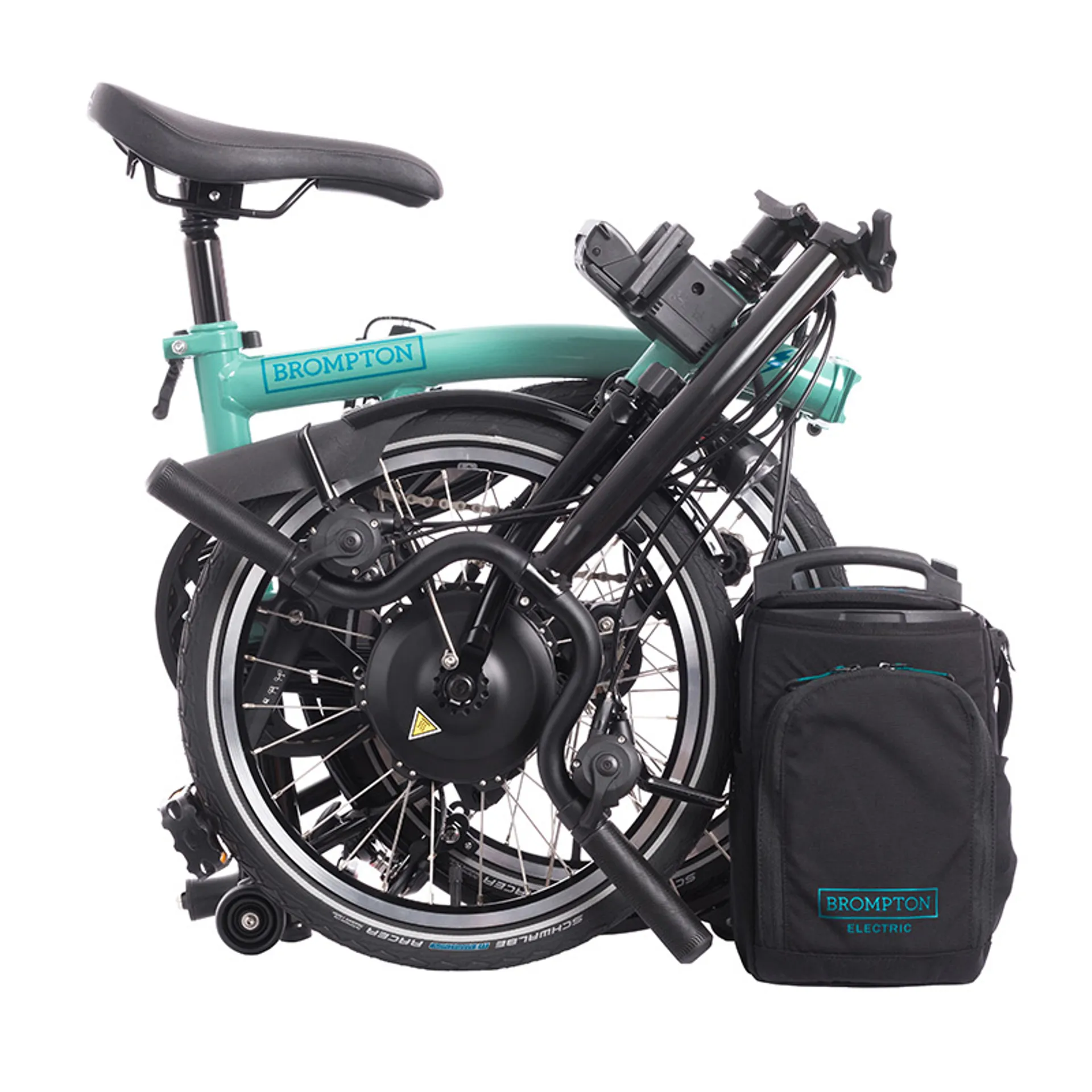 The Brompton Electric folds into a compact package so you can charge and store it safely inside your home or workplace. All of the electric bikes come with the standard battery bag (Essential bag), which has a 1.5L pocket to fit your essentials or your charger. Take your Brompton to the next level.