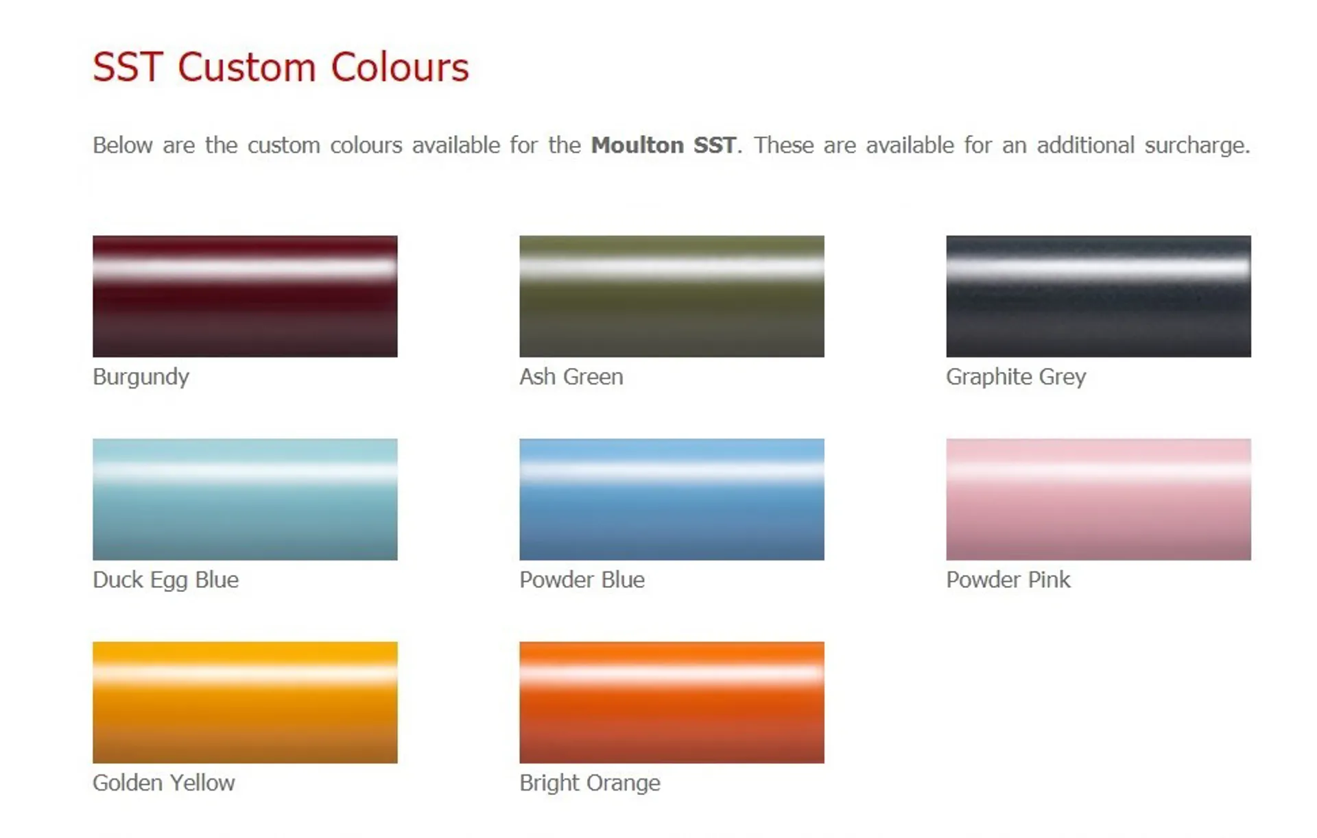 Moulton bicycles come in one frame size. This size fits the majority of riders and the low step-through allows the bike to be mounted with ease. Below are the wheel size, seat tube and pillar dimensions - along with the respective inside leg-length guides. For your inside leg length, measure from the sole of your foot to the inner top of your thigh in inches - please note that this is a different measurement to your trouser inside leg length.